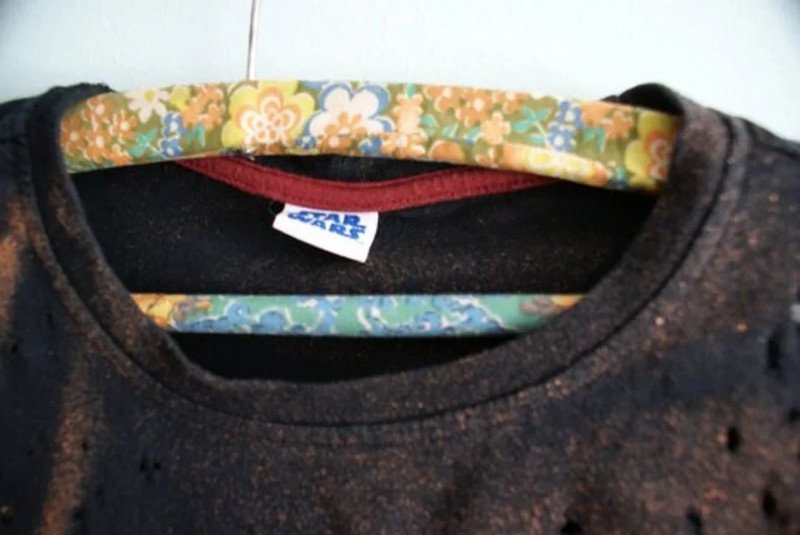 koszulka została odbarwiona i uzyskała efekt distressed look z poszarpanymi dziurami
