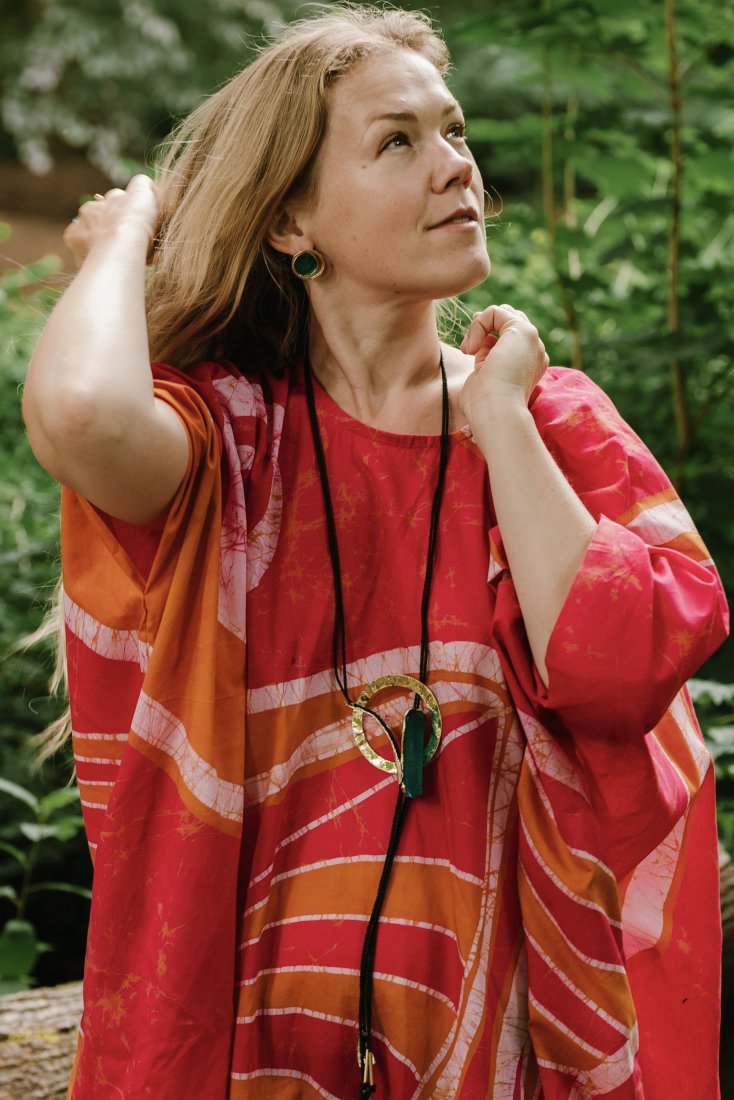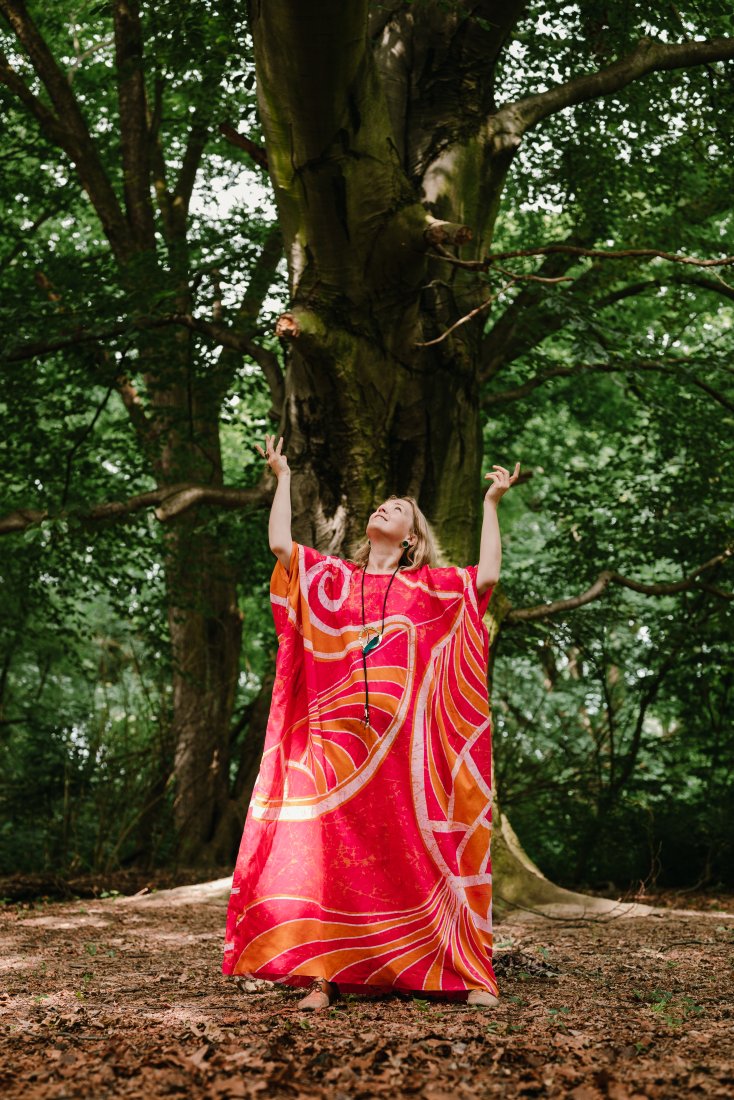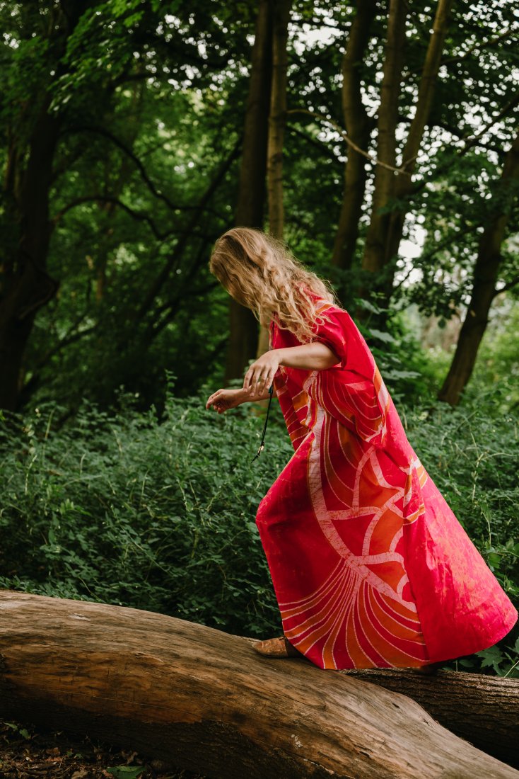 - W zależności od nastroju i stylizacji - możesz nosić suknię luźno lub z paskiem, by podkreślić talię. Pozwala Ci to tworzyć różne wersje tej samej energii - od wolności po skupienie