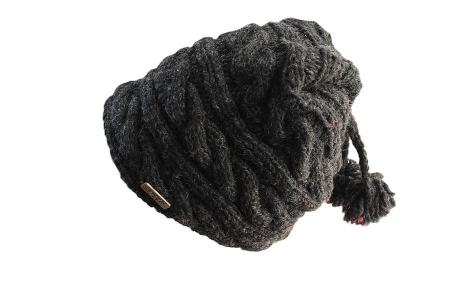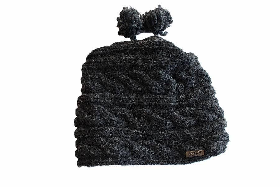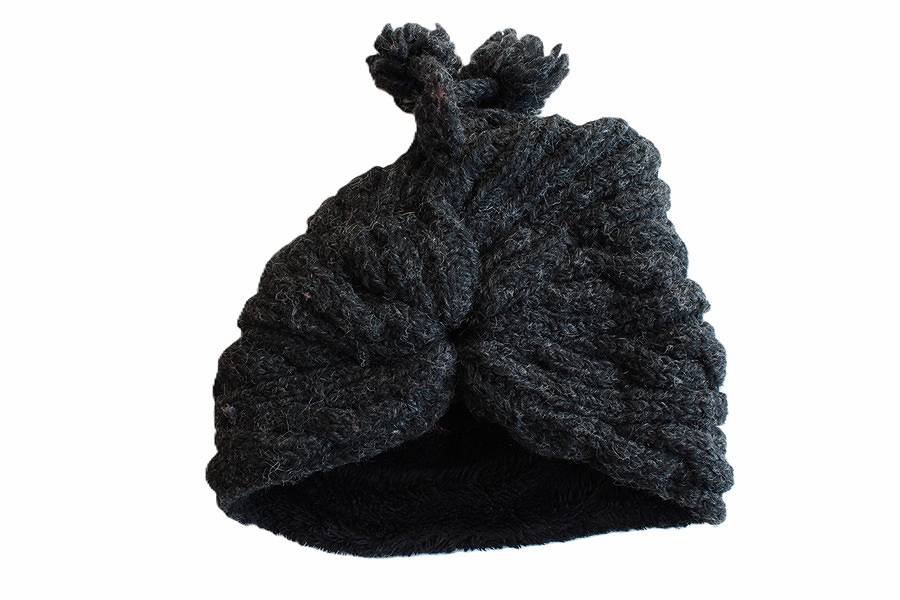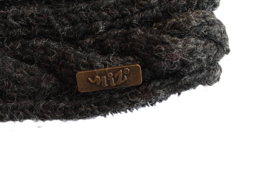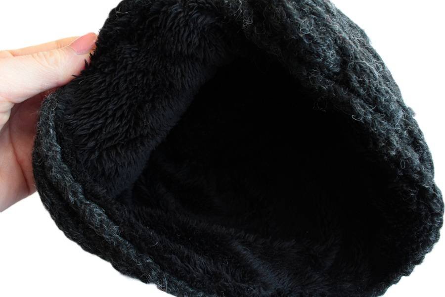 Bardzo ciepła czapka vintage o ciekawym fasonie. Zewnętrzna strona to 100% wełna. Wnętrze to miękkie, syntetyczne futerko. Odcień to czerń przyprószona ciemnym grafitem.