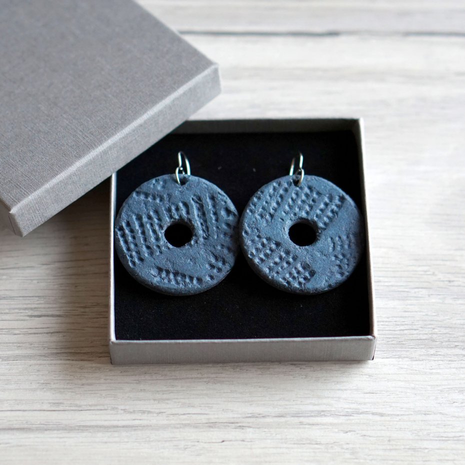 Tagi: #duże lekkie kolczyki, #długie wiszące kolczyki, #granatowe kolczyki, #niebieskie kolczyki koła