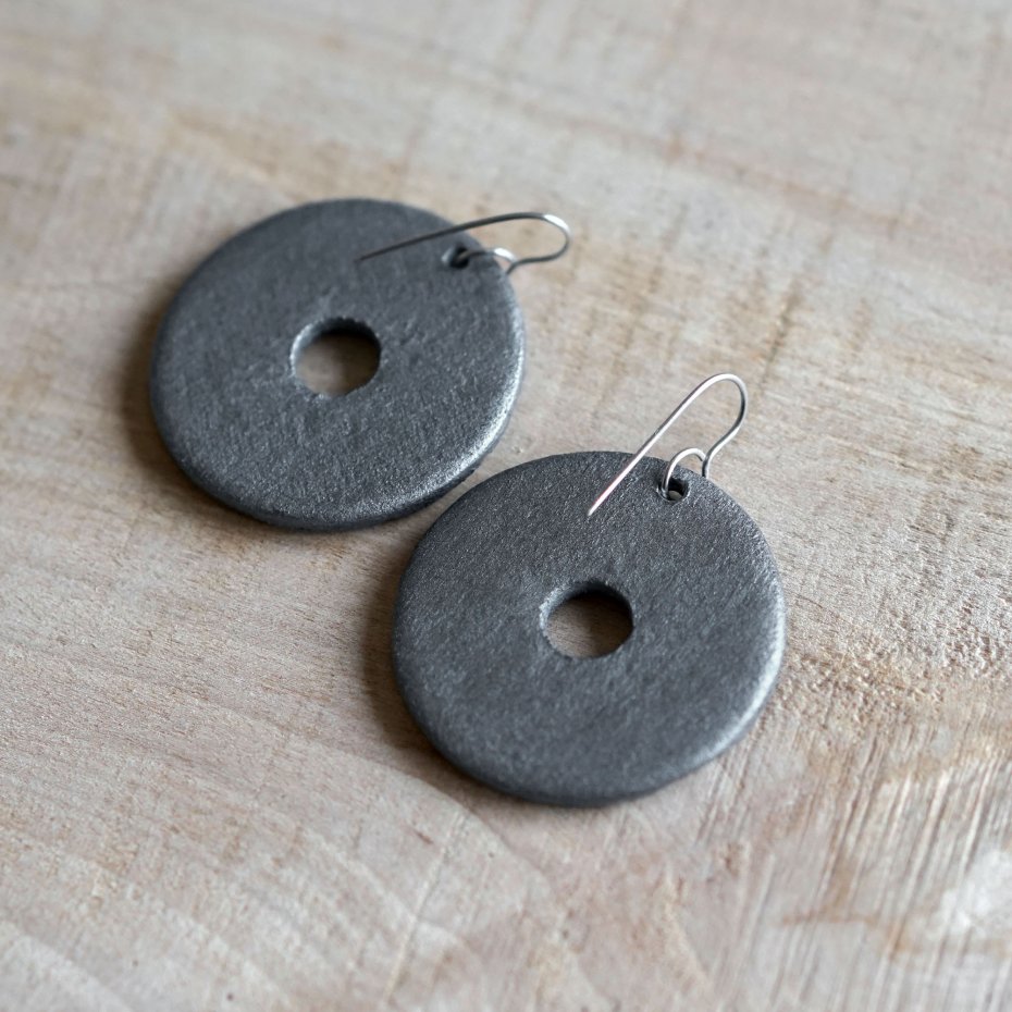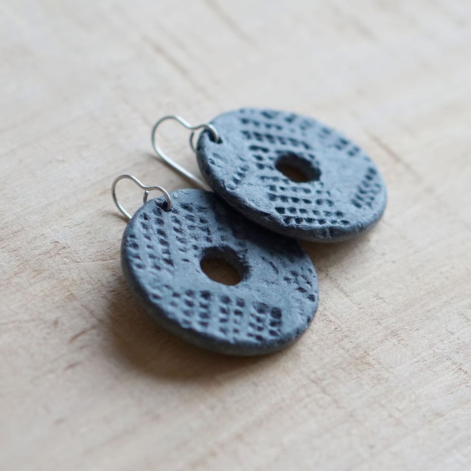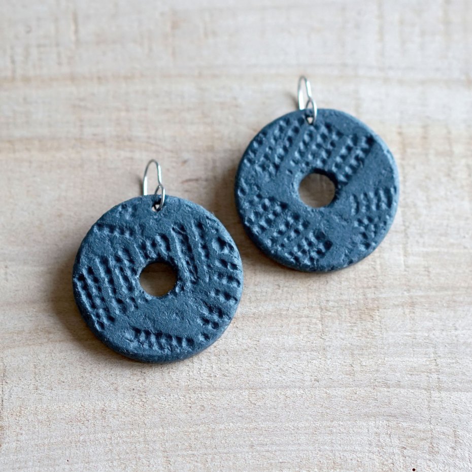 Każdy element powstał z masy papierowej z recyklingu, dzięki czemu kolczyki mają charakterystyczną, chropowatą i organiczną fakturę.