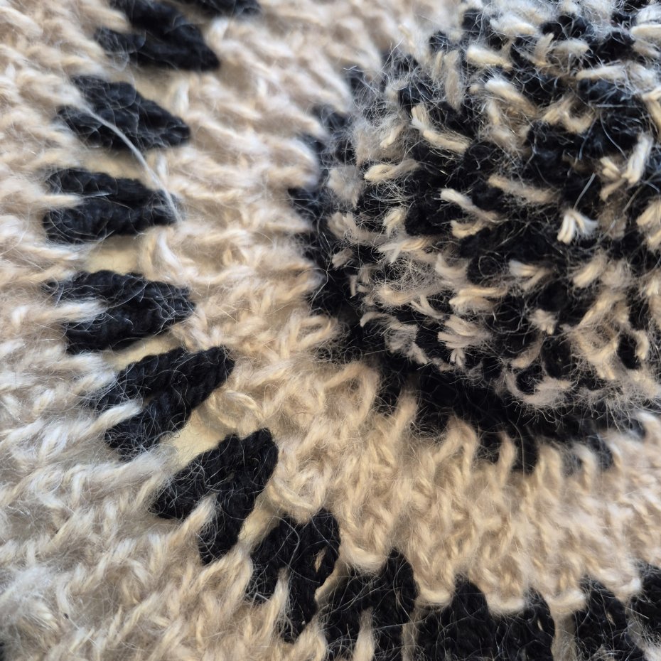 Czarno różowy beret zrobiony ręcznie na szydełku. Średnica ok.27- 28 cm. Średnica pompona ok.8 cm. Wykonany śniegiem ażurowy.
