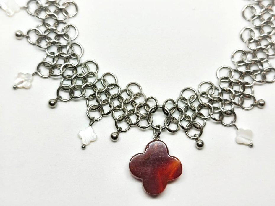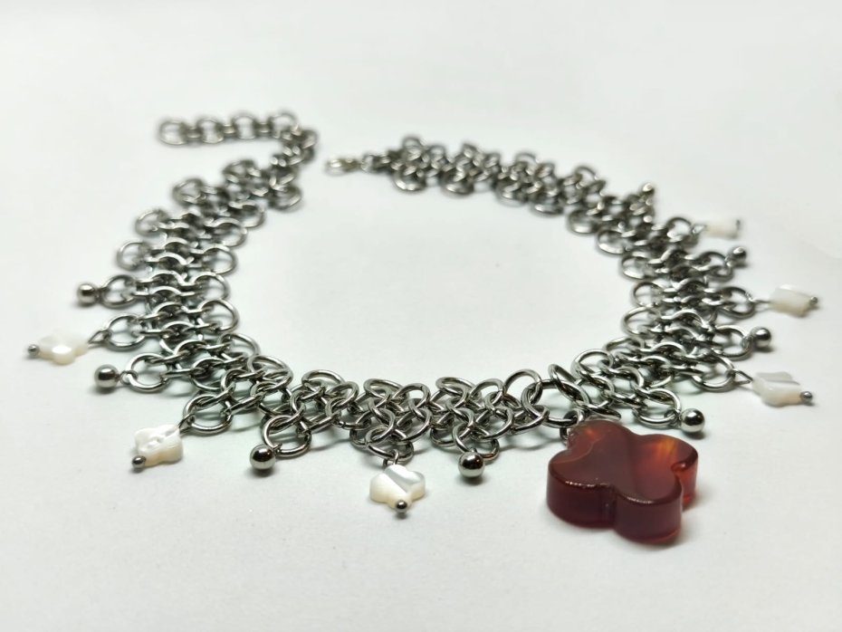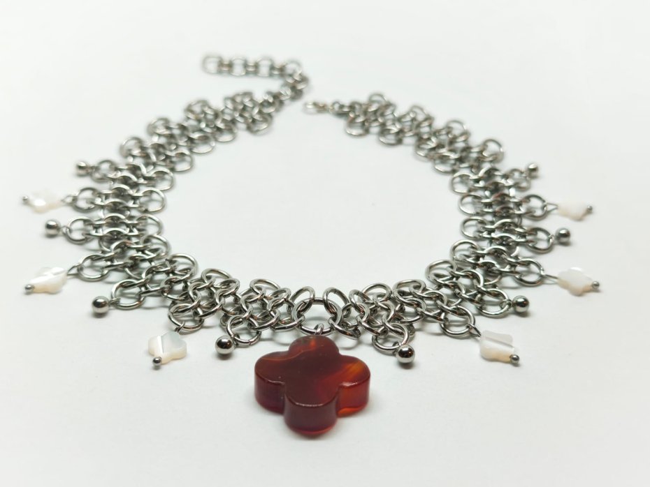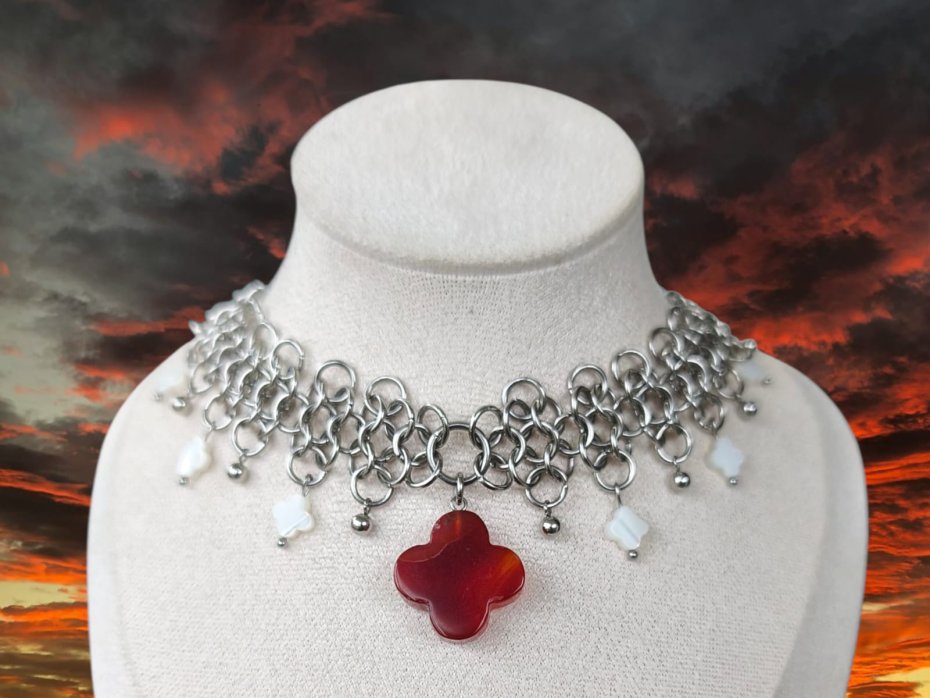 Wykonany ręcznie z dbałością o każdy detal. Kamień w klimacie krwistego bursztynu nadaje chokerowi niezwykły, ciepły i tajemniczy charakter. Idealny prezent dla osoby, która lubi wyróżniać się stylem.