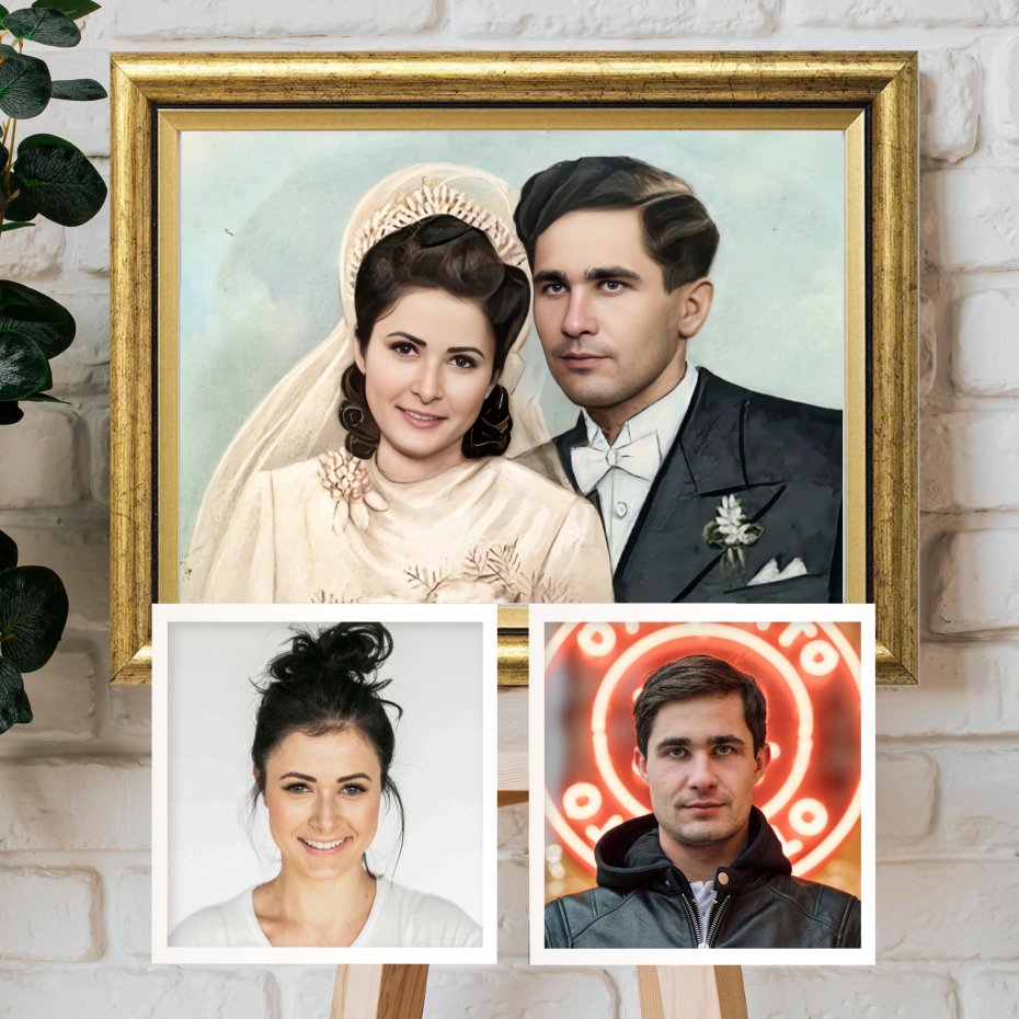 Podaruj personalizowany portret ślubny inspirowany pamiątkami z domów naszych dziadków – unikatowe monidło, które wzruszy, rozbawi i zostanie z obdarowanymi na długie lata.