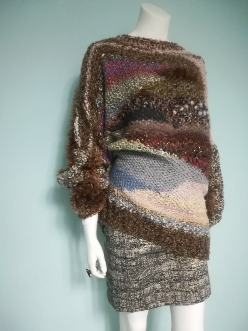 unikatowy sweter o luźnej, prostej,dużej formie. sweter zrobiony ręczn...