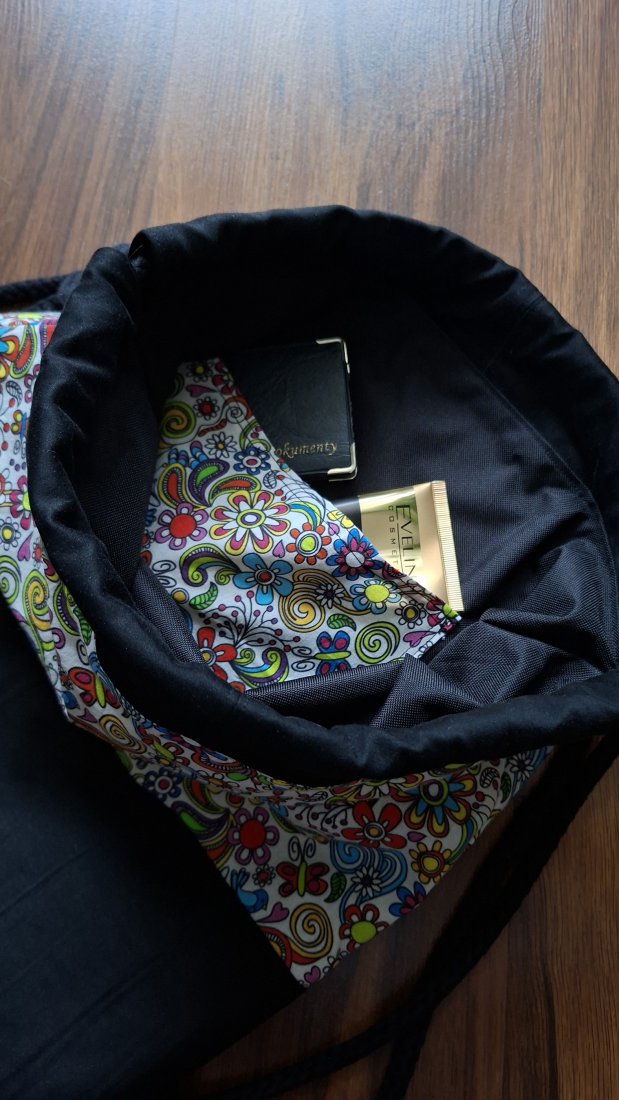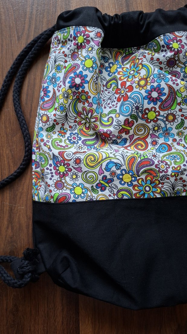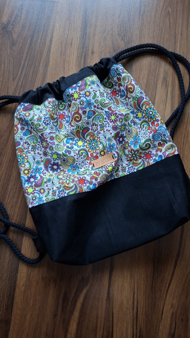 Ten plecak to unikalne połączenie czarnej, klasycznej bazy z radosnym, wielobarwnym motywem przypominającym paisley i kwiatowe ogrody. Każdy egzemplarz w moim sklepie to dowód na to, że upcycling w najlepszym wydaniu może być niesamowicie stylowy i radosny.