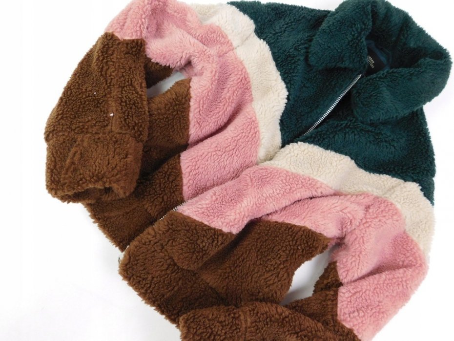 Pluszowa kurtka zapinana na zamek, po bokach kieszenie. Stan bdb.