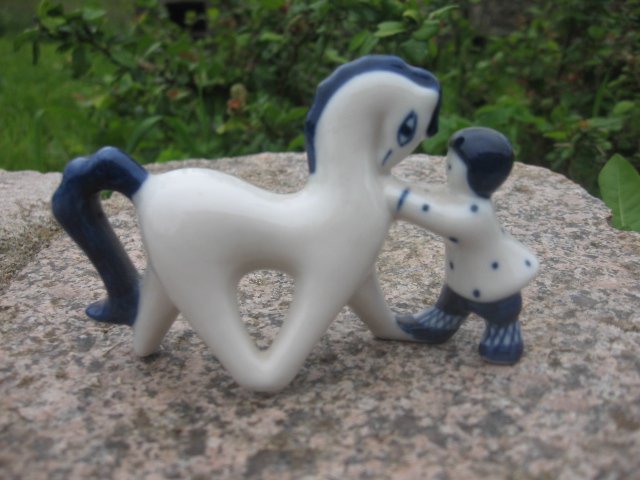 Urocza figurka ceramiczna z byłego Związku Radzieckiego, ręcznie malowana. Słodka mała rzecz do kolekcji :) Wymiary - 6, 5 x 9, 5 cm. Stan zachowania bardzo dobry.