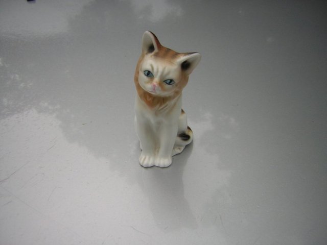 Porcelanowa Figurka. Kot Felix wielce strapiony...czoło zmarszczone...skupiona mina...Urocza to kocina ;) Pusta w środku z dziurką od spodu. Ręcznie malowana, na błyszcząco szkliwiiona.