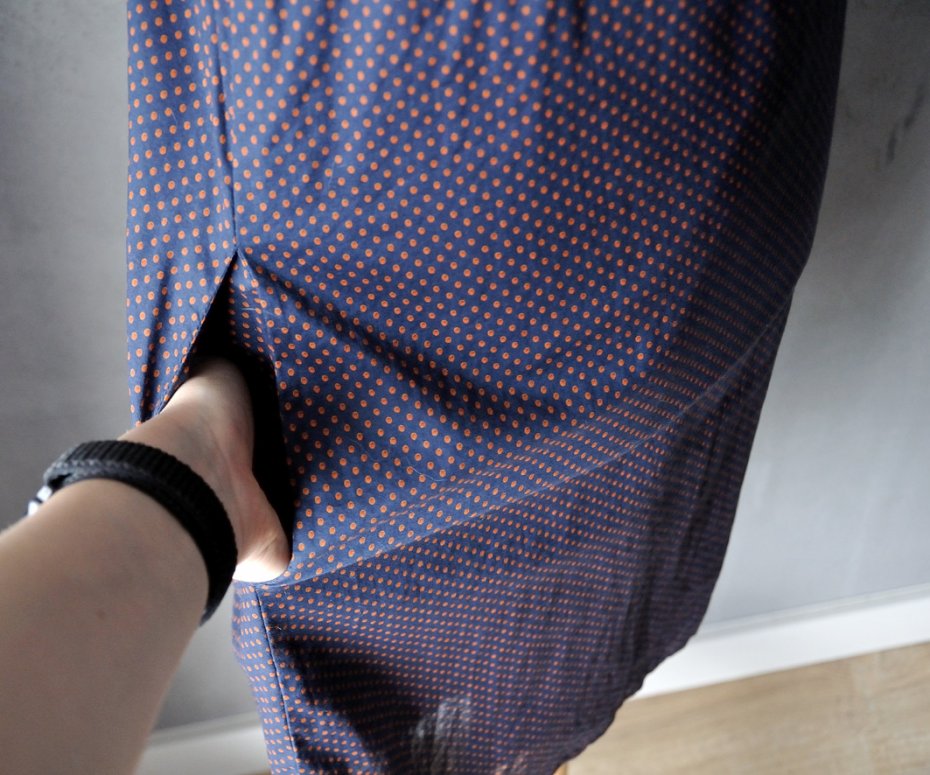 Tagi: #bawełniana sukienka, #granatowa sukienka, #groszki, #sukienka z kieszeniami