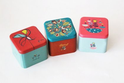 Trzy praktyczne metalowe pudełka vintage. urocze wzory- na każdym z pudełek inny wzór a wszystkie trzy w podobnej ciekawej kolorystyce pasujące wzajemnie do siebie. Świetne do przechowywania np. kawy, herbaty lub innych skarbów. Pod spodem logo z napisem Authentic Fossil. na kokach pudełek na każdym inny ciekawy napis: Vintage Revival, The Simple Life, Garden Party. Krawędzie pudełek są przyjazne- zaokrąglone- a nie ostre. Stan bardzo dobry, rzecz używana.