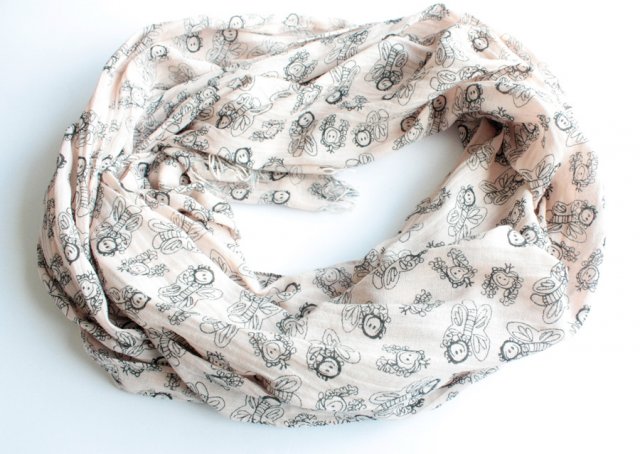 Bardzo miękki, luźno tkany szal w urocze zwierzęce wzory na bardzo jasno różowym tle:) Materiał oceniam na bawełnę.