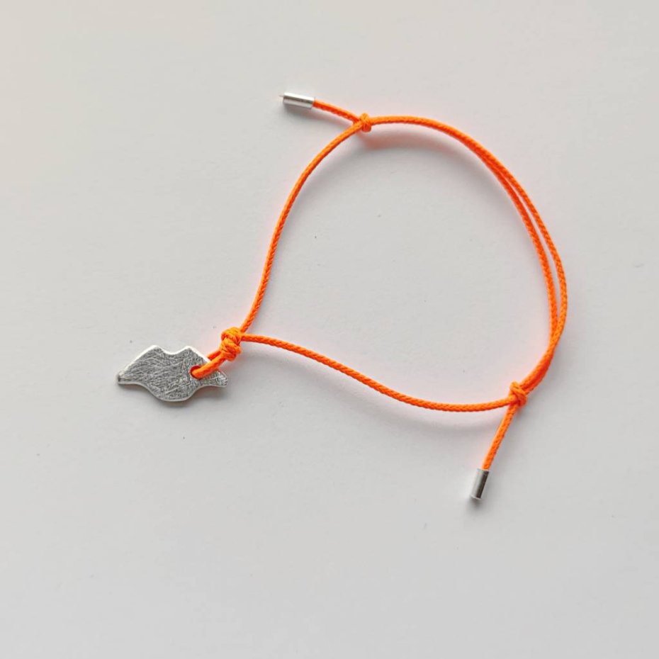 USTA - zabawny dodatek. Ciekawy dodatek przykuwają uwagę i zaskakuje wzornictwem. Taka bransoletka sprawi, że każda stylizacja nabierze niepowtarzalnego, fantazyjnego charakteru. Bransoletka wykonana jest ze srebra, ozdobny sznurek. Srebro - zmatowione. Długość zawieszki - ok. 2 cm. Szerokość - 1 cm.