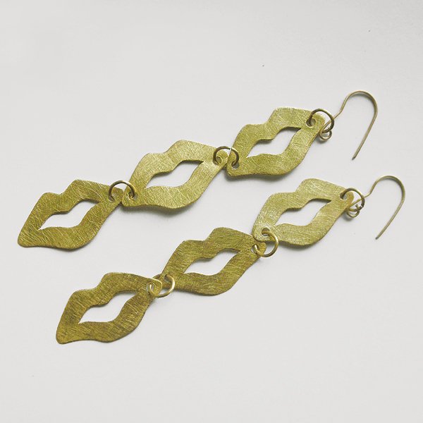 USTA - zabawny dodatek. Ciekawy dodatek przykuwają uwagę i zaskakuje wzornictwem. Takie kolczyki sprawią, że każda stylizacja nabierze niepowtarzalnego, fantazyjnego charakteru. Kolczyki wykonane są z mosiądzu, Mosiądz - zmatowiony. Bigle otwarte - srebro pr.925,pozłacane. Długość z biglami - ok. 12,5 cm. Szerokość - 2 cm.