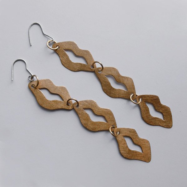 USTA - zabawny dodatek. Ciekawy dodatek przykuwają uwagę i zaskakuje wzornictwem. Takie kolczyki sprawią, że każda stylizacja nabierze niepowtarzalnego, fantazyjnego charakteru. Kolczyki wykonane są z brązu, Brąz - zmatowiony. Bigle otwarte - srebro pr. 925. Długość z biglami - ok. 12,5 cm. Szerokość - 2 cm.