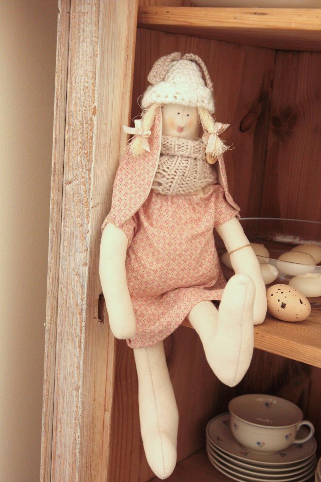 Oryginalna Pani królikowa , z gustem ubrana:) Z jajkiem w dłoni:) Urocza w stylu rustic...vintage.