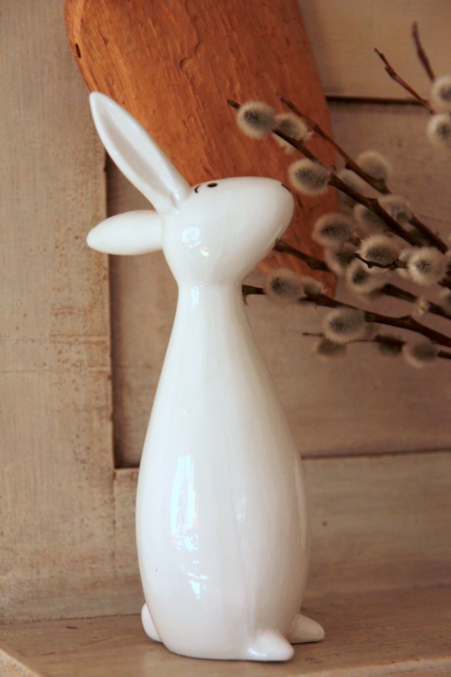 Uroczy, biały ceramiczny zajączek. Idealny na Wielkanoc, może być niezobowiązującym upominkiem!