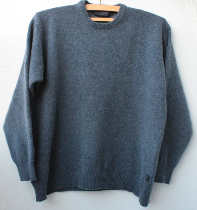 Wełniany sweter VALENTINO. Ciekawy odcień szarości z nutą niebieskiego.