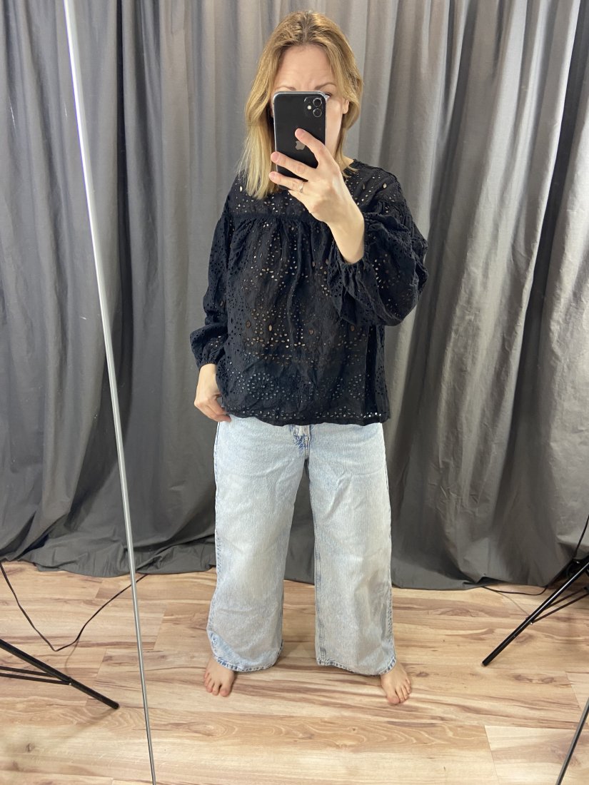 Rozmiar: metowo L, dobra przy tym kroju na S-L, krój niekorzystny dla dużych biustów