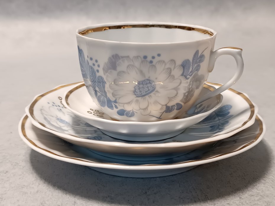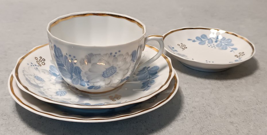 Tagi: #filiżanka ze spodkiem, #porcelana, #trio śniadaniowe, #złocenia