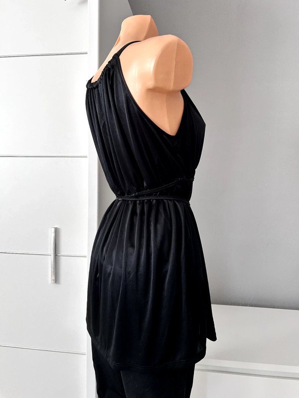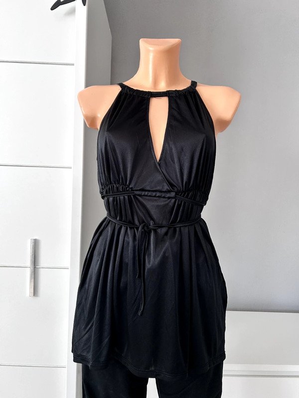 Czarna bluzka marki Vero Moda, rozmiar z metki to L 40. Można nosić ją na mniejszych rozmiarach, też fajnie wygląda. Jest wiązana, więc można podkreślić swoją talię. Będzie świetnym wyborem na randkę lub imprezę.