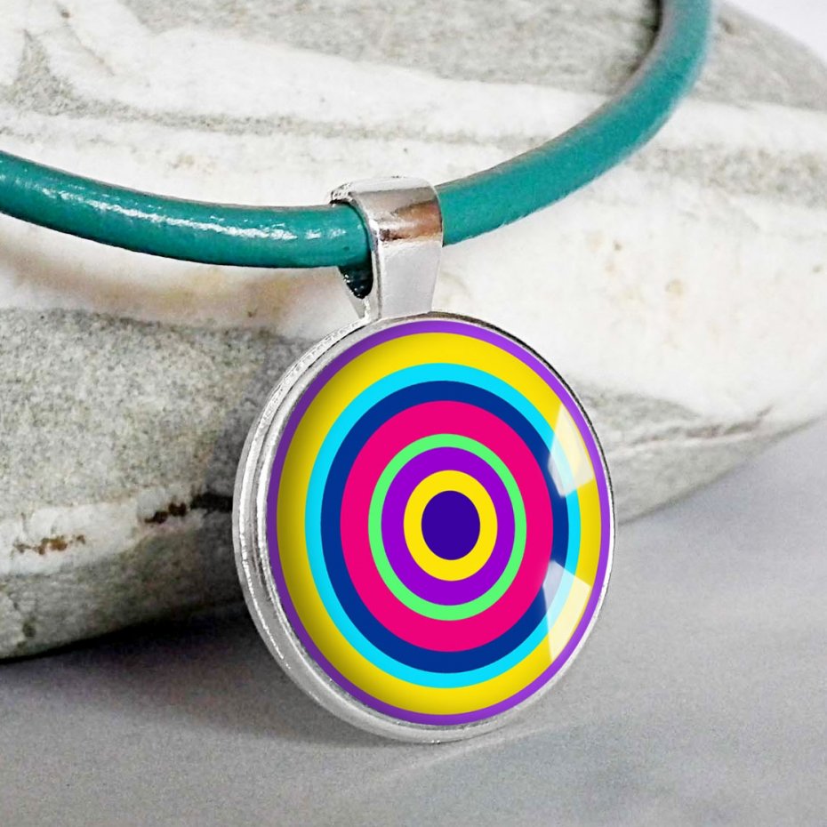 Unikatowy naszyjnik z wisiorem, zawieszonym na skórzanym rzemieniu jubilerskim. Motyw graficzny umieszczony jest za wypukłym szkłem - tzw. kaboszonem, w oprawie w kolorze srebra. Obrazek jest bardzo wyraźny, w intensywnych kolorach, wywołany na papierze fotograficznym. Oryginalne szkła z grafiką wykonane są ręcznie według mojego projektu, z dbałością o każdy detal - dzięki czemu biżuteria ta jest niespotykana i jedyna w swoim rodzaju.