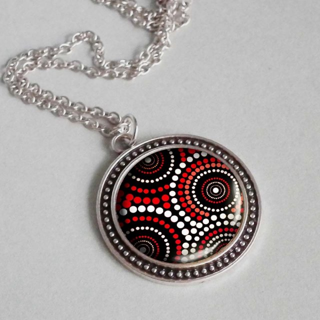 Unikatowy naszyjnik z oryginalną grafiką. Okrągły wisior w kolorze antycznego srebra, zawieszony na łańcuszku. Łańcuszek posiada zapięcie, można go wyjąć i wisior zawiesić na innym łańcuszku lub rzemieniu. Motyw graficzny umieszczony za wypukłym szkłem - tzw. kaboszonem nadającym efekt 3D. Obrazek jest bardzo wyraźny, w intensywnych kolorach. Wydruk najwyższej jakości na papierze foto. Biżuteria nie zawiera niklu i ołowiu.