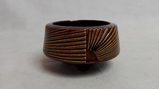 Doniczka ceramiczna vintage firmy VETTER. Na nóżkach, z dziurką, sygnowana pod spodem.Szkliwiona.
