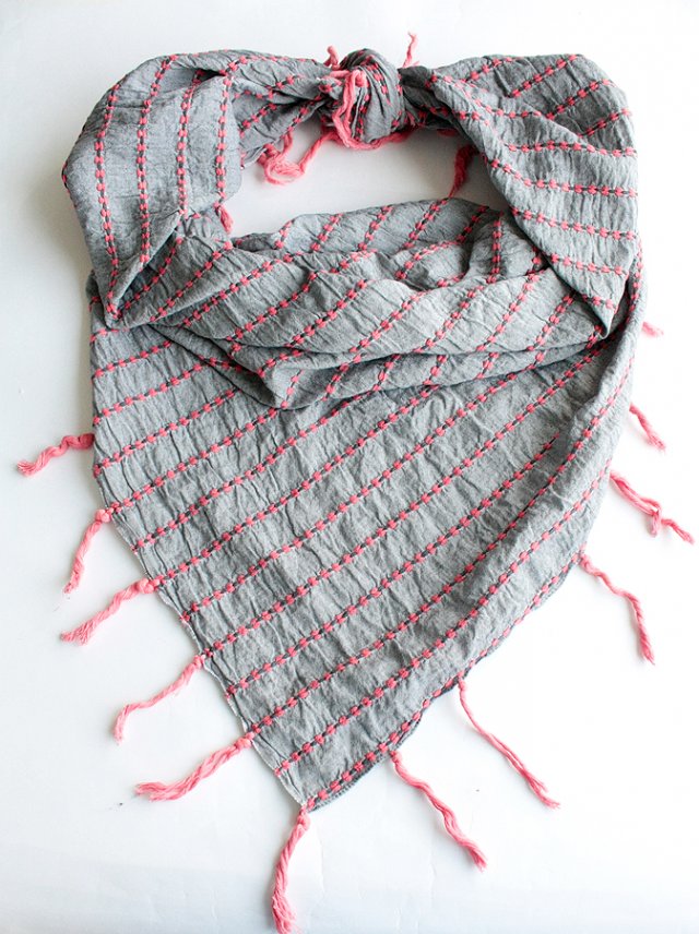 Duża, miękka chusta o ciekawej, wyszywanej fakturze. Materiał to miłą w dotyku bawełna.