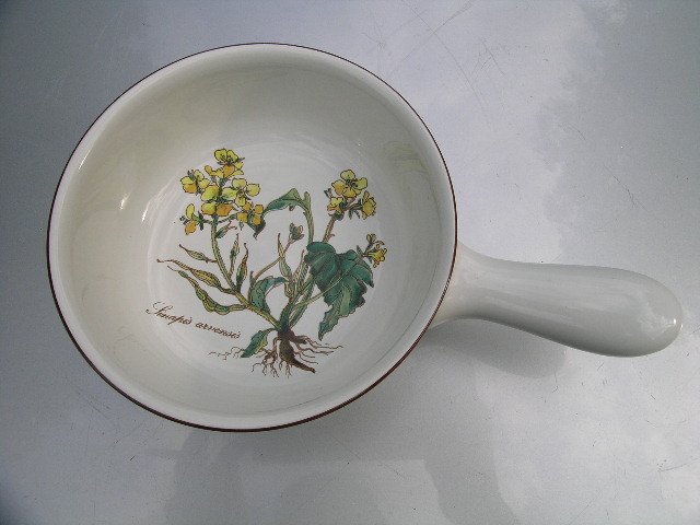 Wygodna Porcelanowa Miska z wygodną rączką - uchwytem z kultowej serii Villeroy & Boch - BOTANICA. Tu Sinapis awesis. Sygnowana,nadająca się do zmywarki;