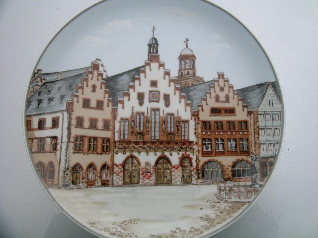 Kolekcjonerski porcelanowy Talerz sygnowany VILLEROY&BOCH HEIRICH GERMANY Frankfurt am Main Romer. Kamieniczki z frankfurtu,bardzo klimayczne i kolorystycznie stonowane. Wykończenie satynowe,wzór nieco wypukły pod szkliwem. Ładny jako obrazek, ma haczyk do powieszenia.