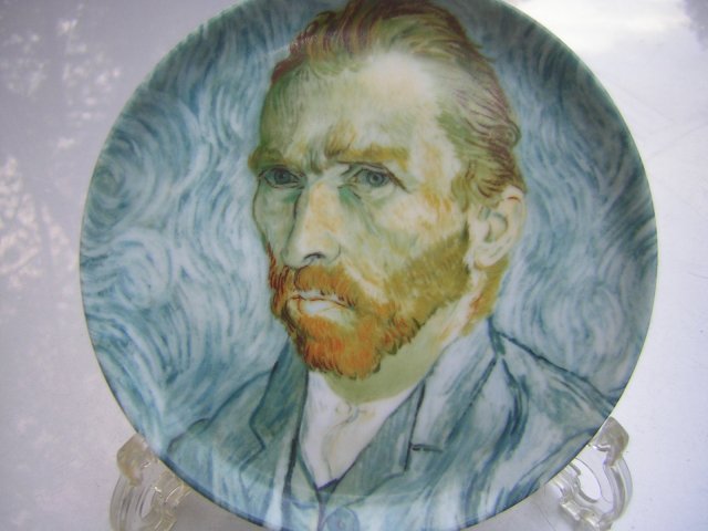 Autoportret na porcelanie. Niewielki porcelanowy talerzyk podstawek. Sygnowany. VINCENT VAN GOGH / 1853 - 1890/ Wykończenie satynowe. Wzór lekko wyczuwalny pod dłonią. Przyklejony haczyk do powieszenia. Nie przeszkadza w użyciu.