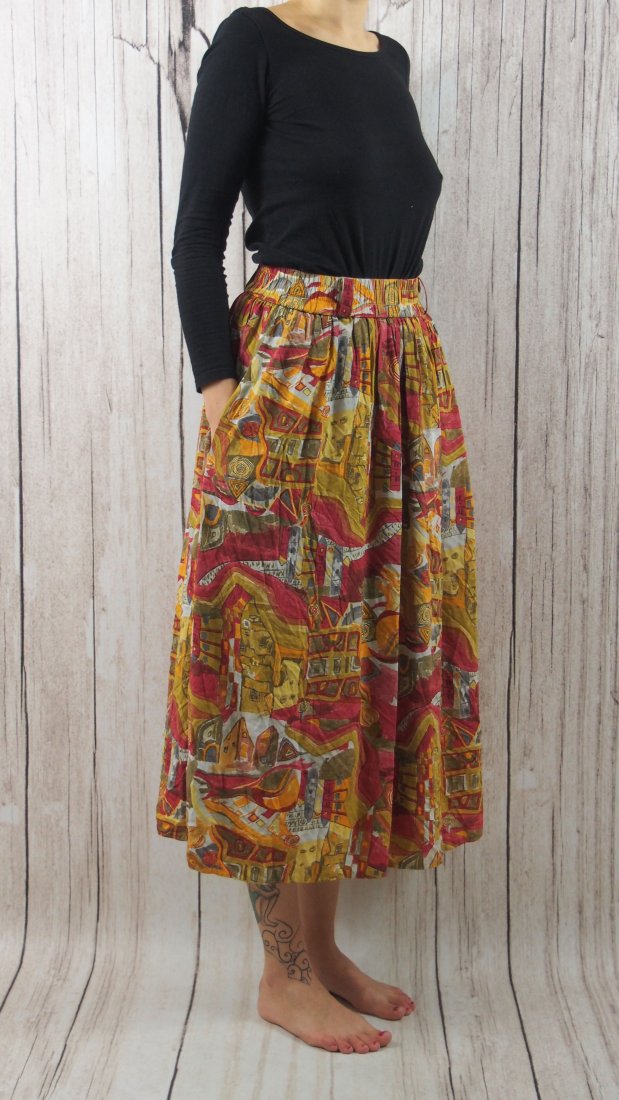 Piękna spódnica za kolano wykonana z wiskozy. Na podszewce z acetatu.