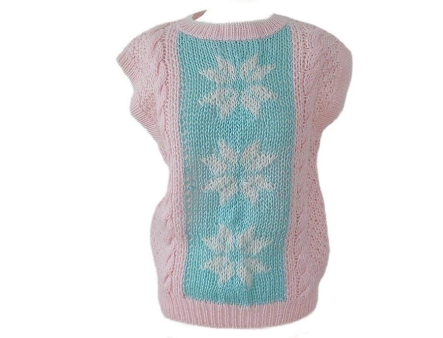 Bezrękawnik robiony na drutach. Delikatne kolory i efekt vintage do koszuli, longera czy t-shirtu.