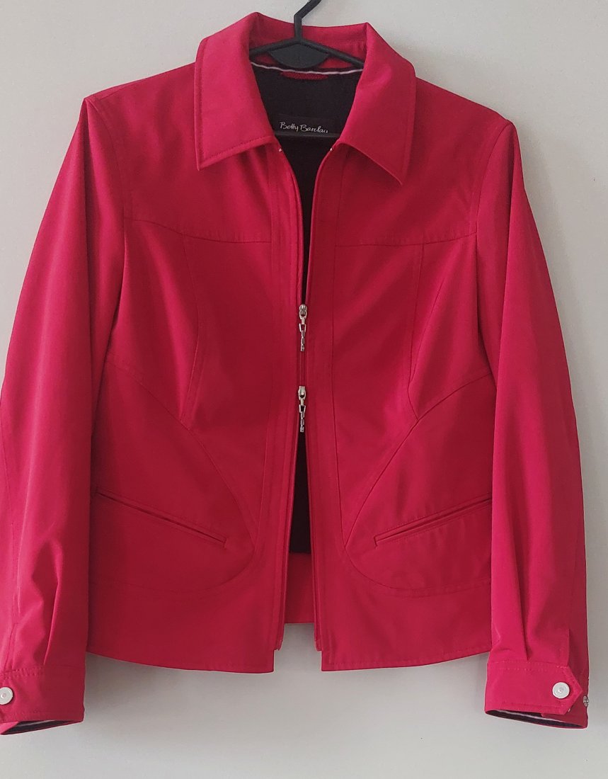 Czerwona, krótka kurtka marki Betty Barclay. Krój podkreślający sylwetkę, zapięcie na zamek, wewnątrz podszewka.