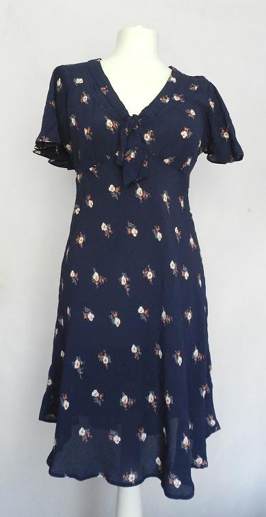 Granatowa sukienka z wzorem drobnych kwiatków