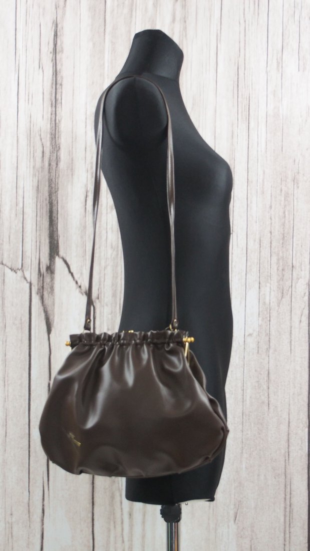 Torebka z dawnych lat. Przepięknie zaprojektowana, z eko skóry. W środku podszewka materiałowa (wygląda na zupełnie nową). Jedna komora + jedna kieszonka boczna.
