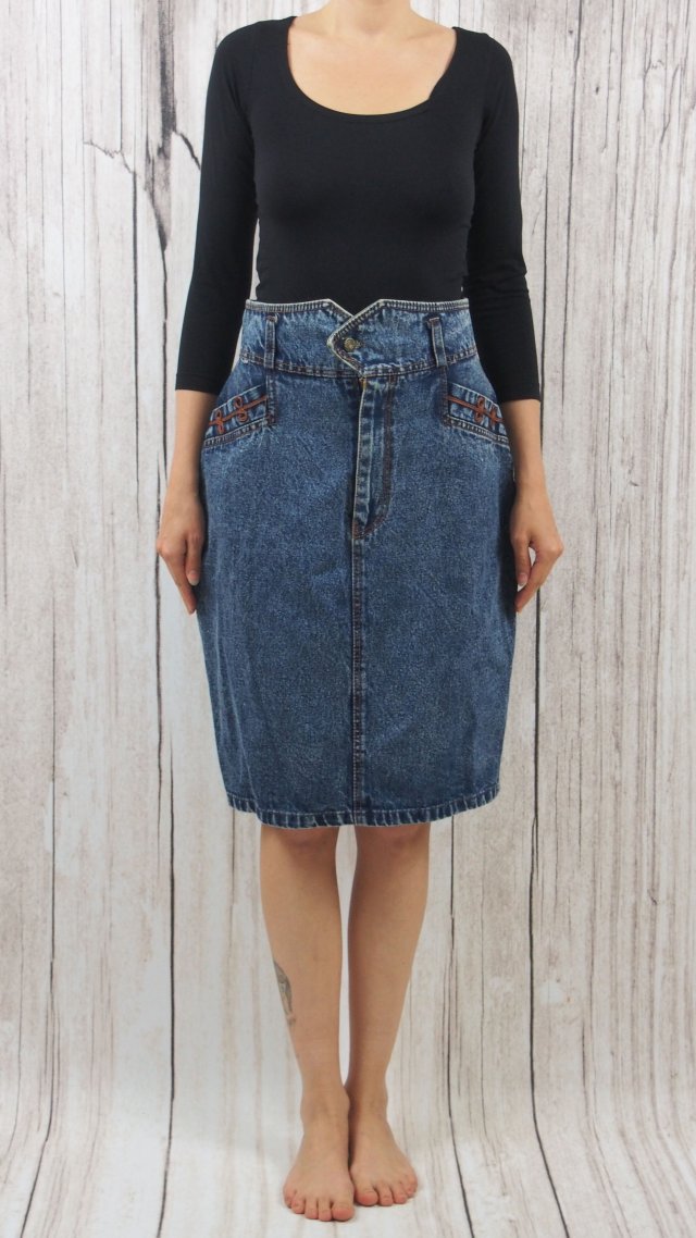 Spódnica za kolano z dawnych lat. Świetny krój. Gruby jeans.