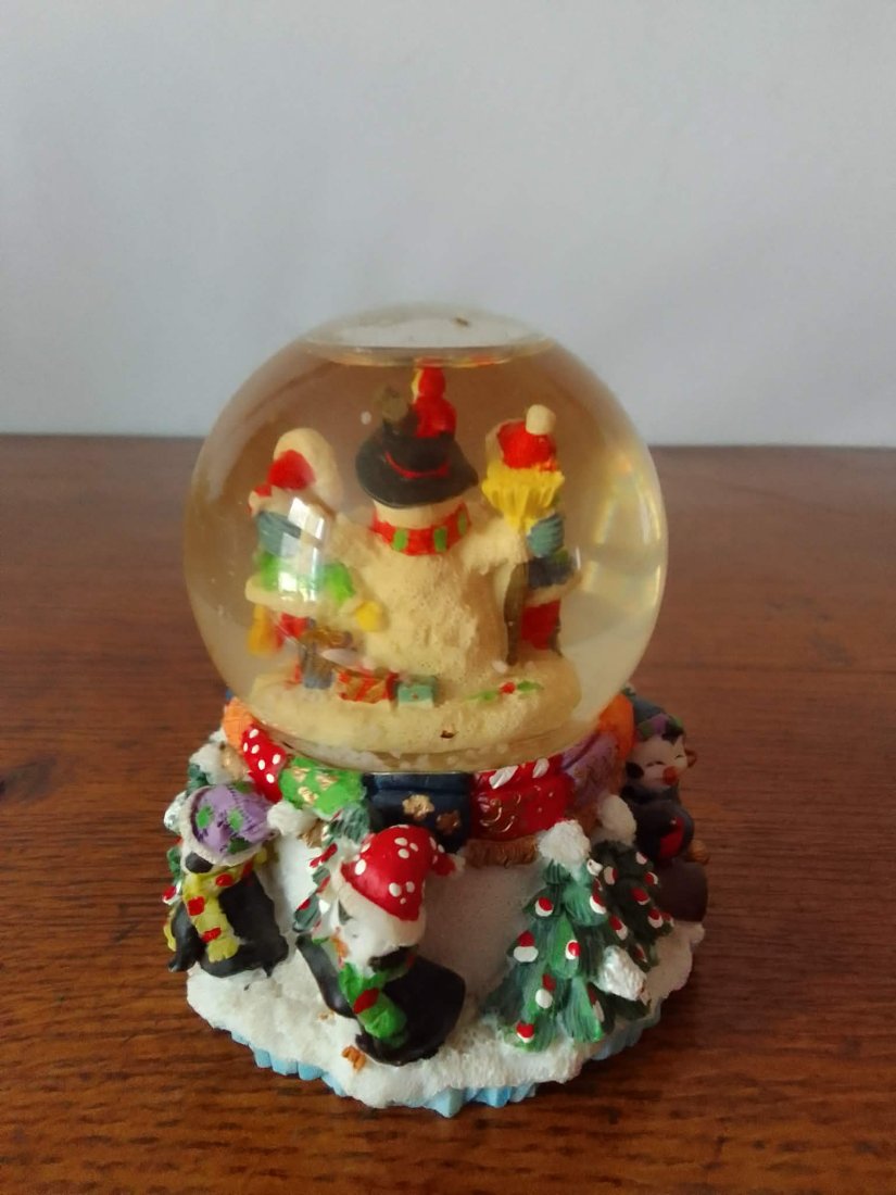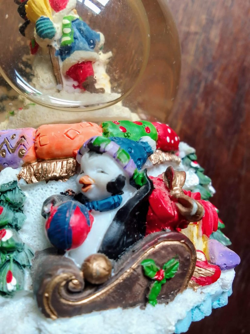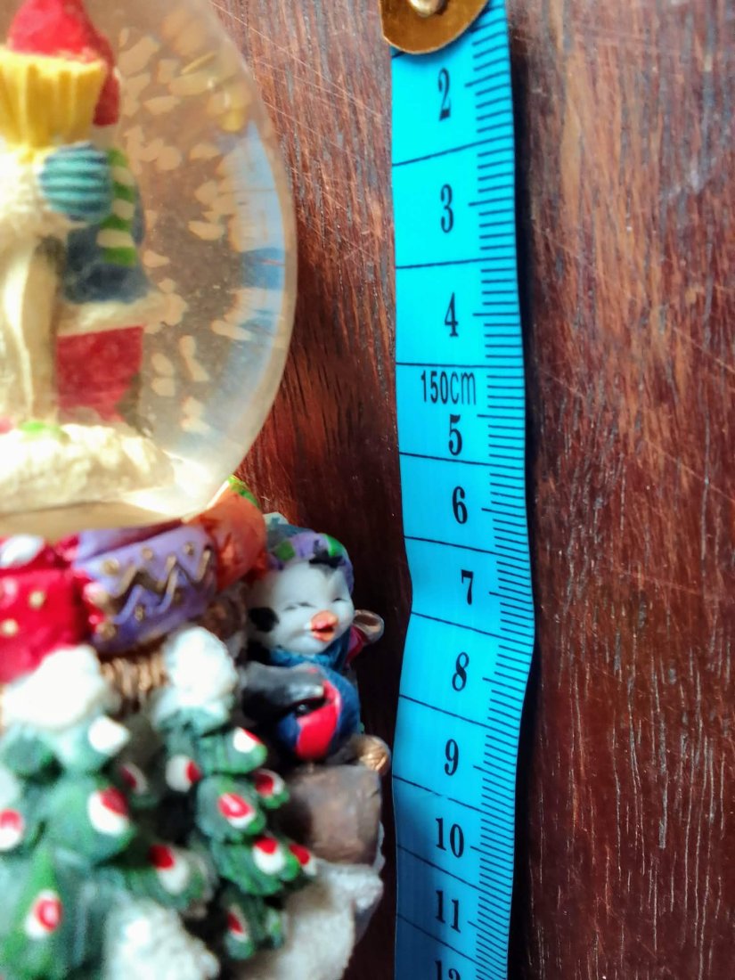 Wnętrze kuli: W szklanej kopule znajduje się dopracowana scenka przedstawiająca Świętego Mikołaja w towarzystwie dzieci oraz choinki. Po wstrząśnięciu wnętrze wypełnia się wirującym "śniegiem" i połyskującym brokatem.