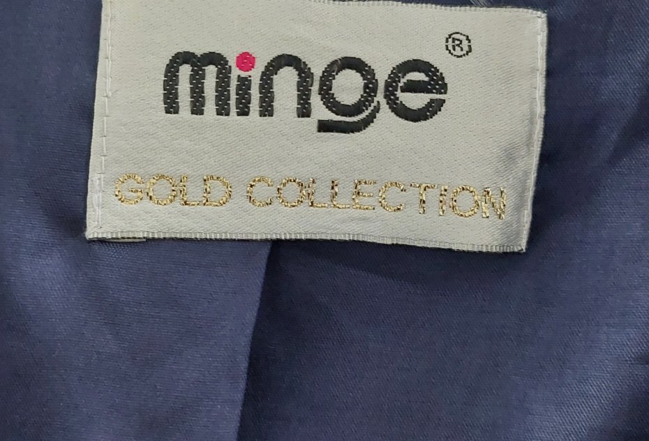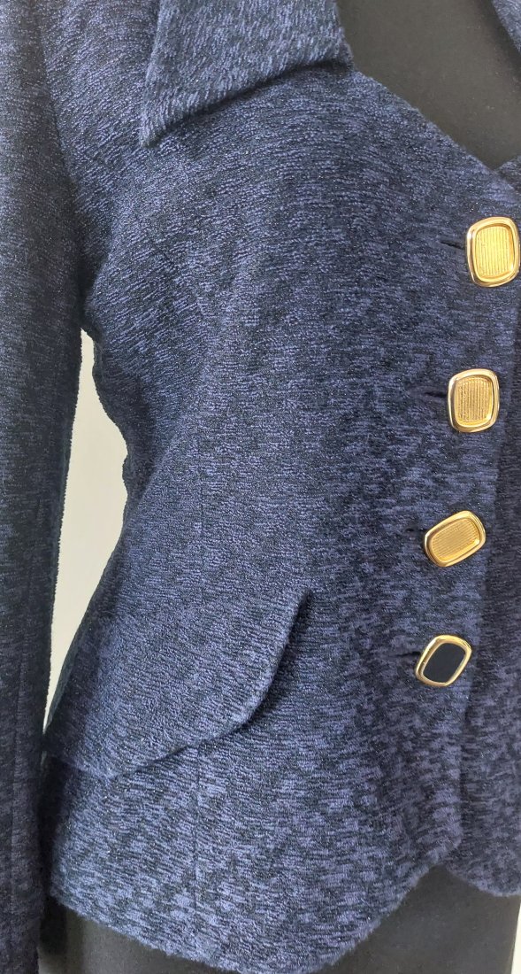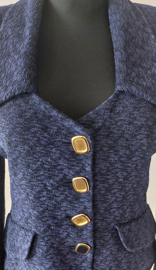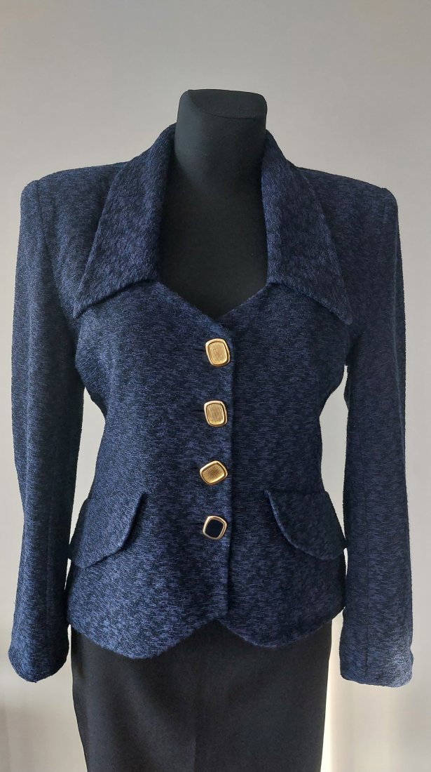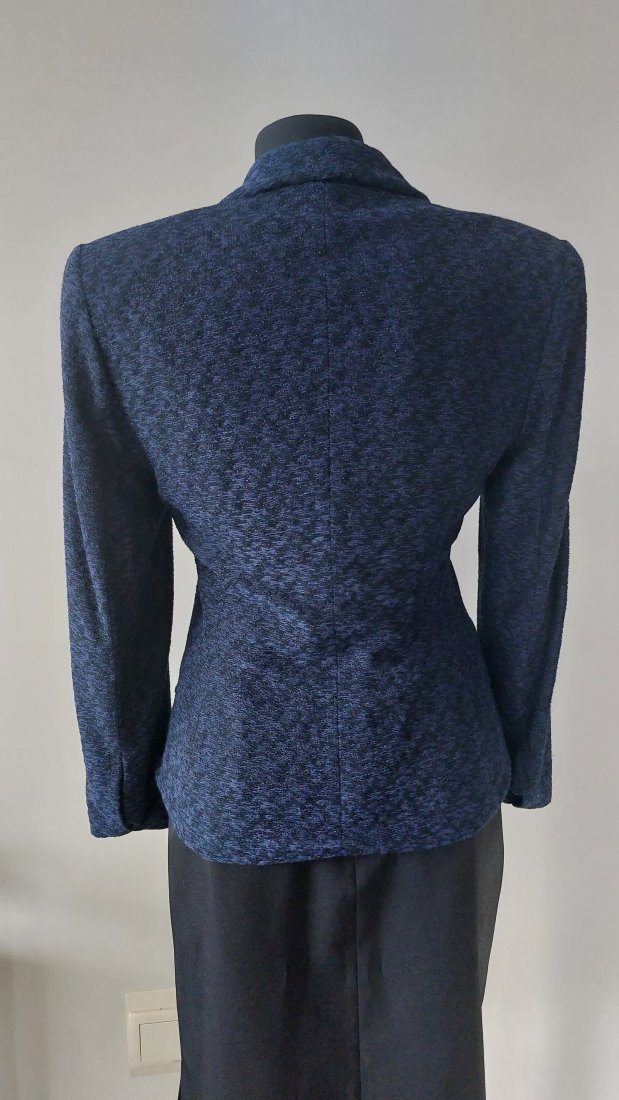 Granatowy żakiet z delikatnym połyskiem, sugerowany rozmiar S/M.