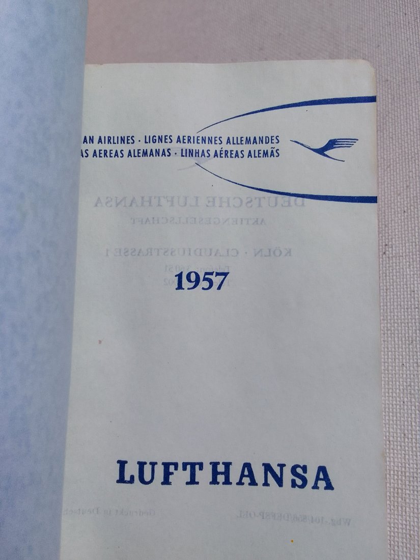 Wyjątkowa pamiątka dla miłośników lotnictwa i kolekcjonerów vintage: oryginalny notes/kalendarzyk z logo Lufthansa z roku 1957.