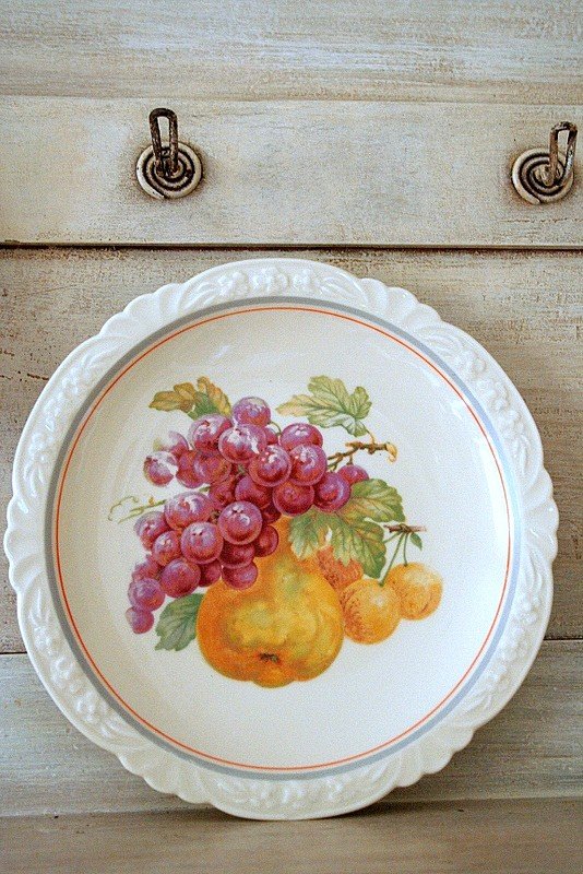 Uroczy kremowy porcelanowy talerz. Ozdobiony motywem owoców. Porcelana niemiecka - stara Bavaria.