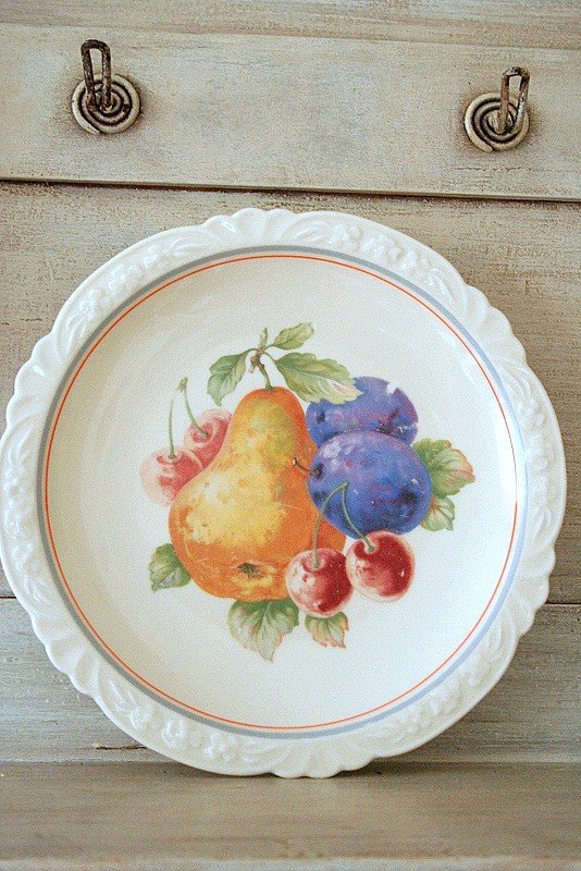 Uroczy kremowy porcelanowy talerz. Ozdobiony motywem owoców. Porcelana niemiecka - stara Bavaria.
