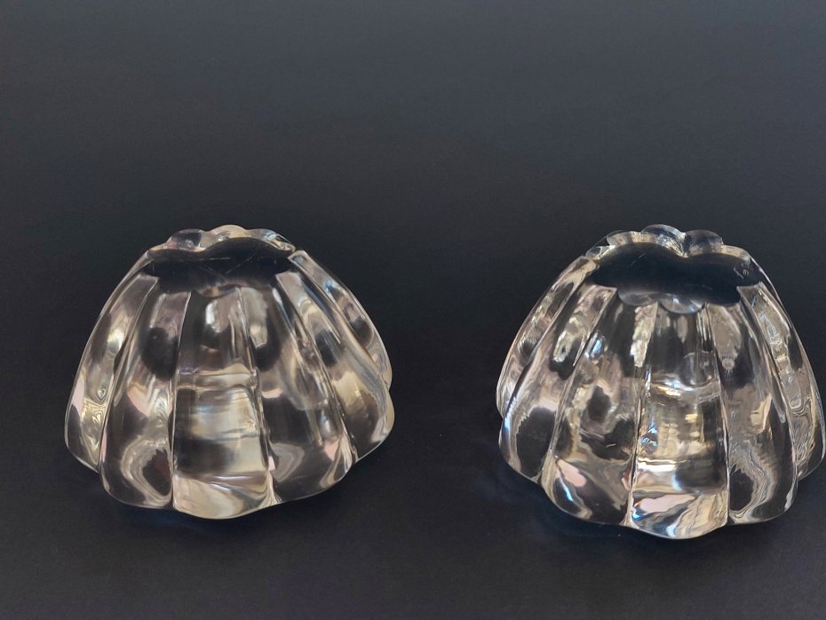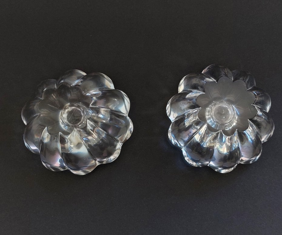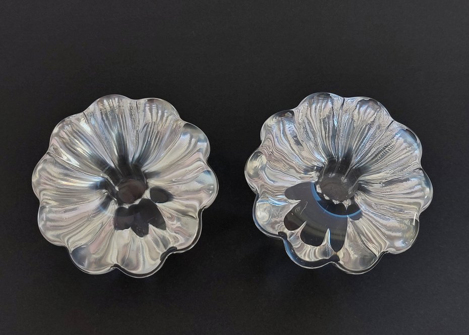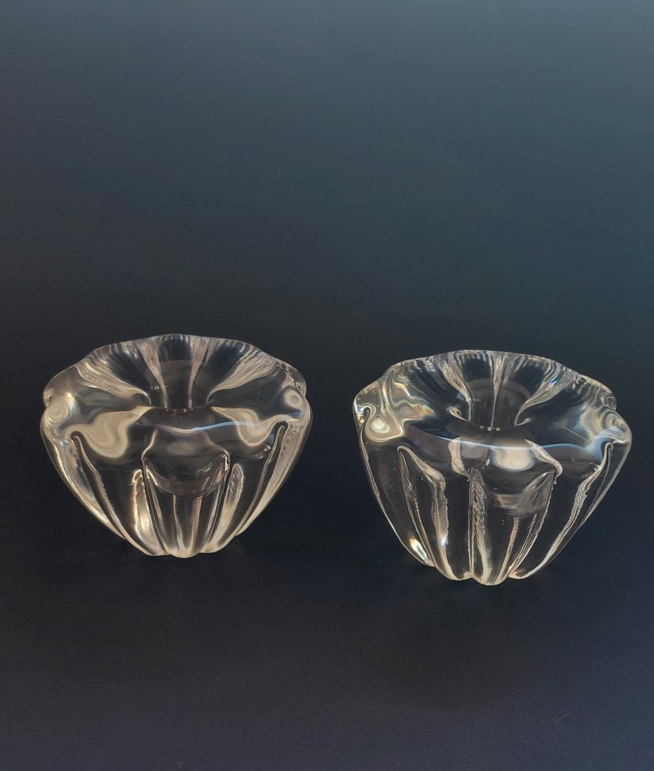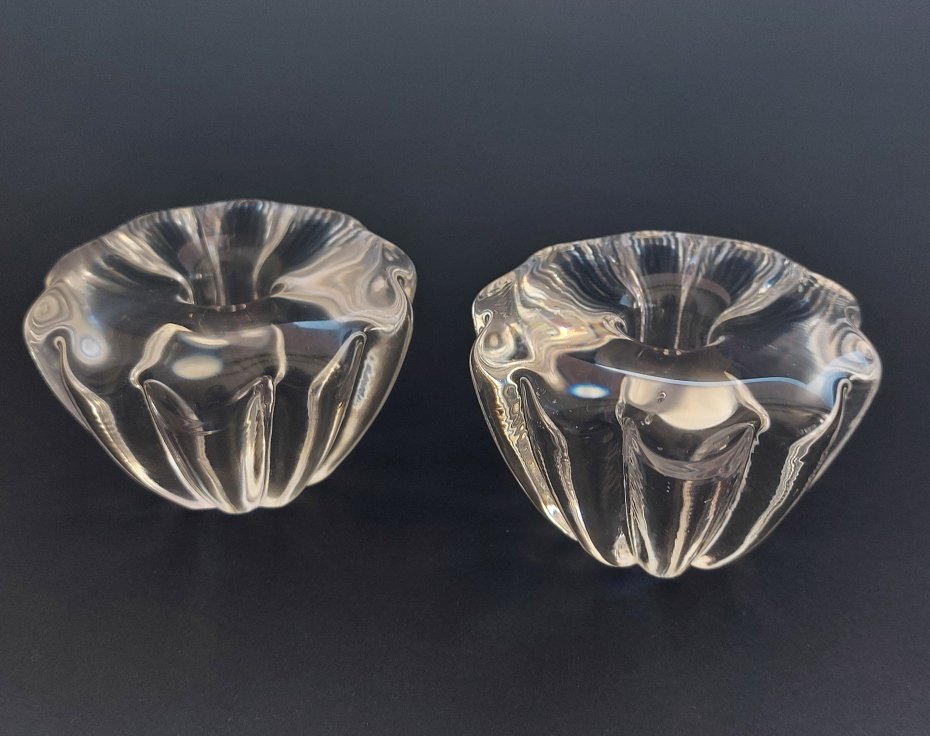Szwedzkie świeczniki vintage wykonane ze szkła, ogólny stan bardzo dobry ( niewielkie rysy), wysokość 4 cm.