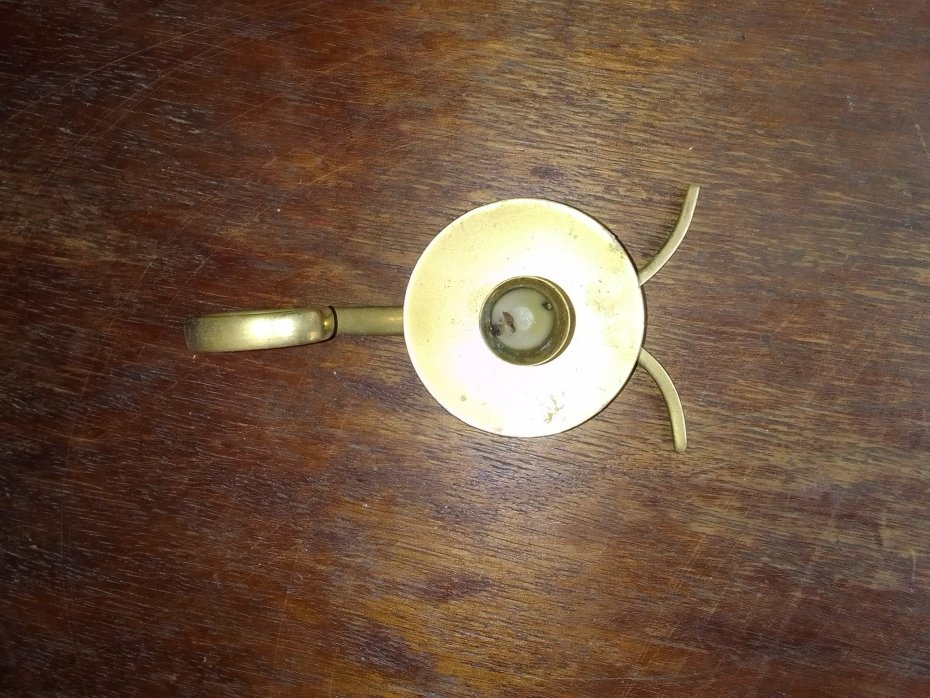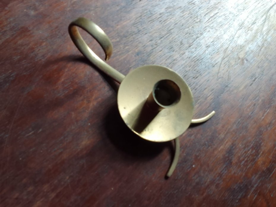 Charakterystyka: Posiada charakterystyczny uchwyt w kształcie serca lub zawijasa oraz podstawkę na spływający wosk.