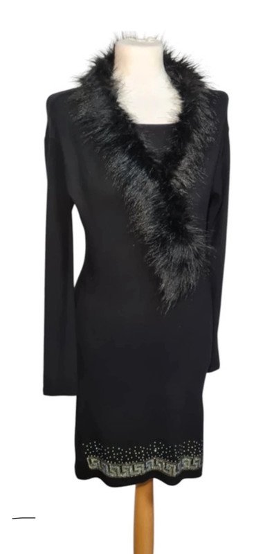 4.  > Vintage Y2K czarna sukienka z futerkiem Wiskoza Coquette Święta Wigilia Sylwester Sylwestrowa (nr 7101638)