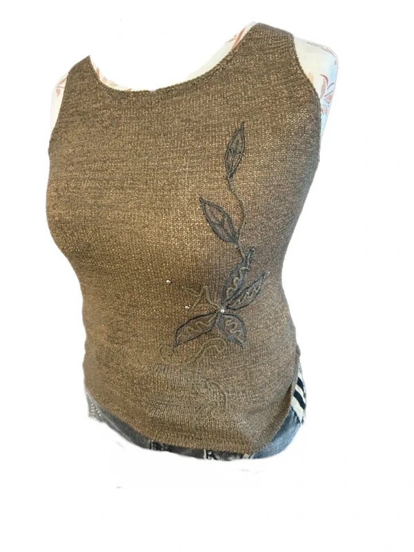 Unikatowy, niepowtarzalny wzór roślinny z haftem z przodu.
