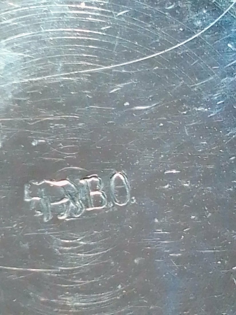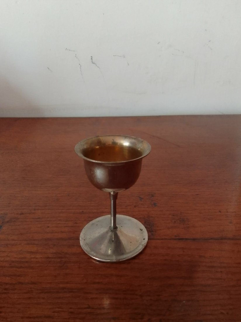 Kolekcjonerski, metalowy kieliszek do likieru o wysokości 7 cm. Na spodzie rzadka, wyraźna sygnatura niemieckiej wytwórni B. Otto z Hildesheim, przedstawiająca słonia oraz inicjały B.O. Przedmiot o ciekawej formie, z zachowaną patyną czasu, idealny dla kolekcjonerów dawnych wyrobów metalowych i pamiątek z regionu Dolnej Saksonii.