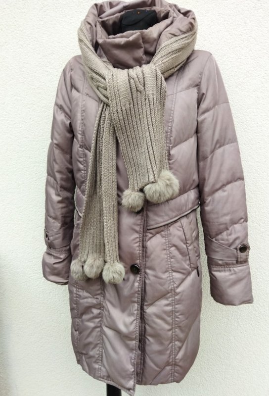 Puchowy pikowany płaszcz lub dłuższa kurtka w oliwkowym kolorze z dzianinowymi elementami wykończeniowymi w tym samym kolorze ( doszywany szalik i dzianinowe ściągacze - na zdjęciu znacznie się różnią wyszedł odcień w brązie, w realu zarówno płaszcz jak i szalik jest oliwkowy. Starannie uszyty i wykończony , z licznymi detalami. Kołnierz typu wyższa stójka, ciekawie skomponowany szal z pomponami z króliczego futerka doszywany do kaptura dopinanego na zamek ( można go odpinać) , w talii pasek/plisa obszyty zamkiem, dwie wpuszczane kieszenie z zamkami, ozdobne mankiety rękawów z doszywanymi do podszewki dzianinowymi ściągaczami dodatkowo chroniącymi przed chłodem. Zapinany na zamek ukryty pod dwurzędowym zapięciem na napowe guziki. Całości dopełnia ładna wzorzysta podszewka . Dużo ładniejszy w realu.