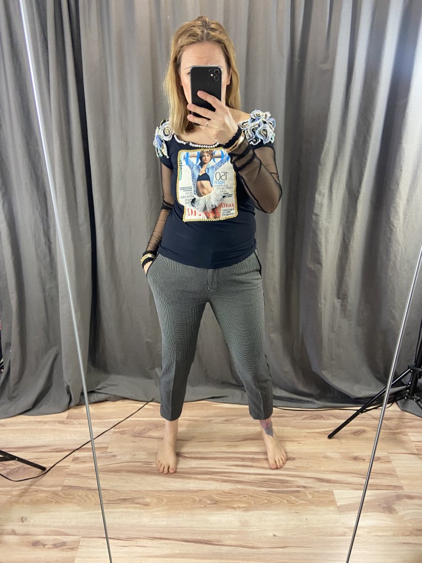 Artystyczna tunika hand made. Na bazowej koszulce, przyszyte koraliki, i inne ozdoby, ręcznie wykonane kwiatki na ramionach. Dzieło jakiejś szalonej artystki.